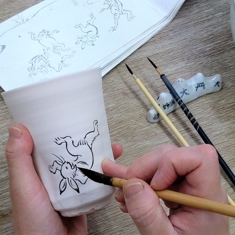 現在でも愛されているこの絵巻をモチーフに、清水寺門前茶わん坂にあります当店工房にて一つ一つ手作りで制作しております。